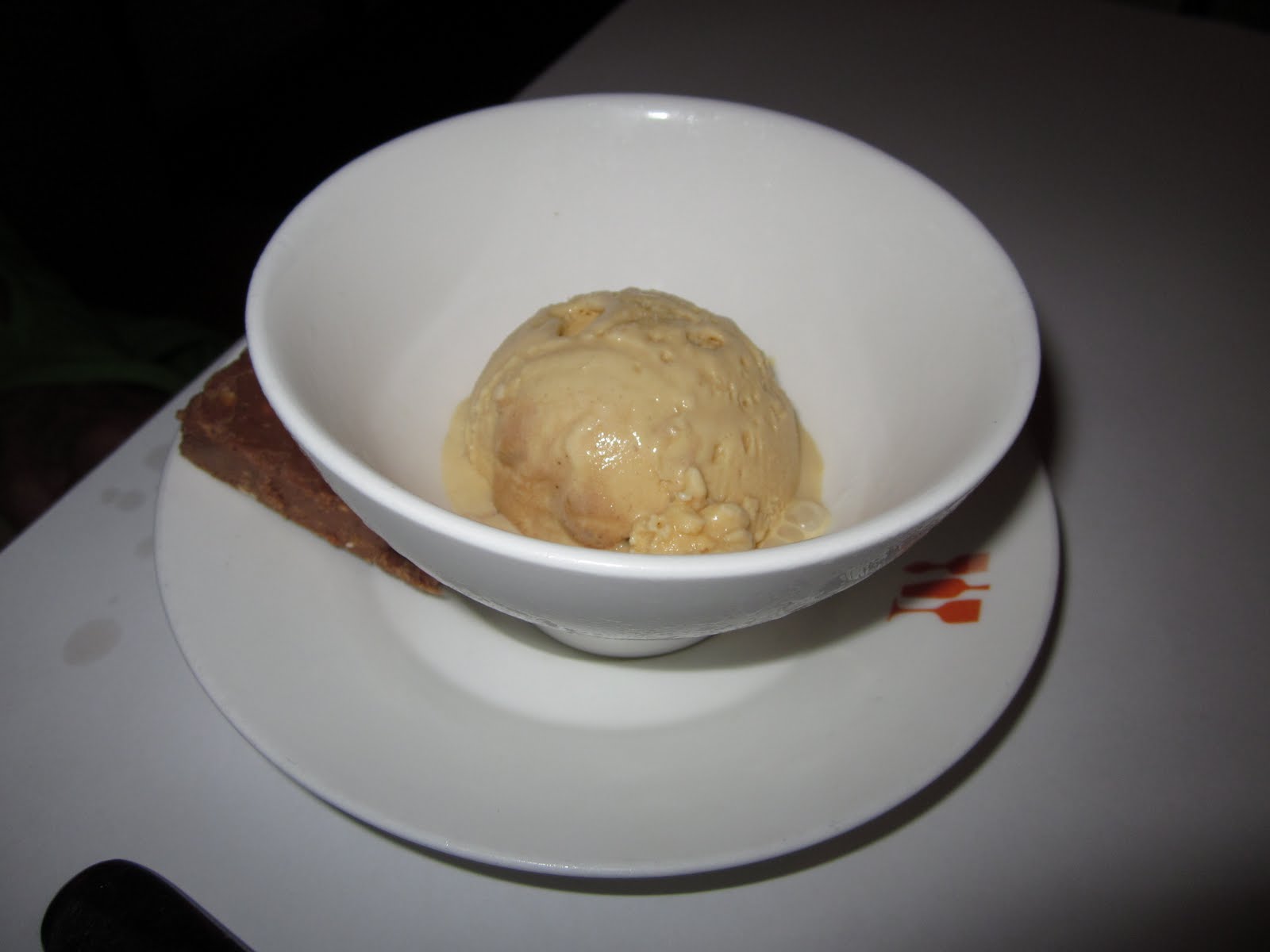 Finally, we decided to have dessert at the restaurant. Mom chose a simple scoop of salted caramel gelato, which was really tasty. It also came with this slice of peanut-butter feuilletine-fudge-like confection, which I really enjoyed (but Mom, not so much).
